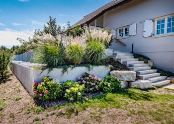 Pour ce projet, le client avait fait un appel à un paysagiste pour l’étude et le conseil. Nous avons été consulté pour 66 ml de mur en préfabriqué en L. Notre gamme nous a permis de proposer une réponse en murs DECO et ECO avec une finition brossée qui à séduit le client.