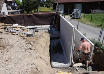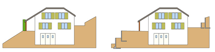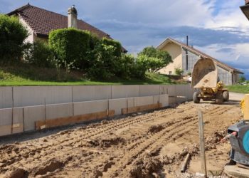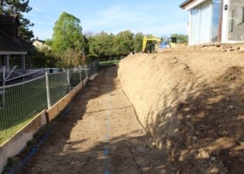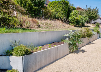 Après plusieurs nuits passées à réfléchir à des solutions, nous nous sommes dirigés, après avoir pris conseils auprès d’un paysagiste, vers la pose d’éléments en L en béton.