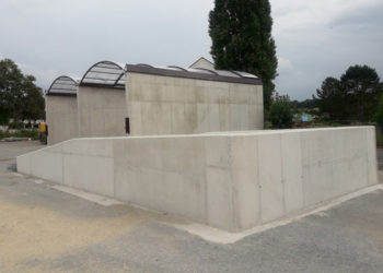 Protection de l’arrière de l’abris contre les intempéries à l’aide des ventelles en aluminium.
