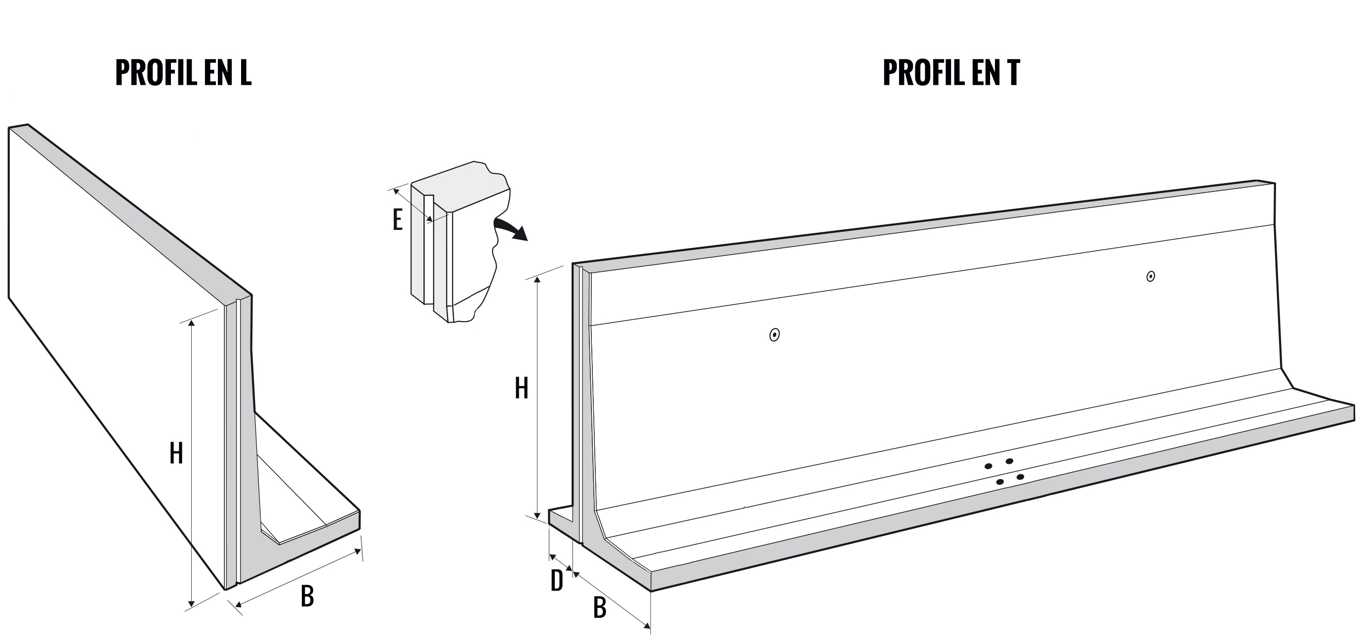 • Mur d’angle (semelle et voile pour une finition parfaite)